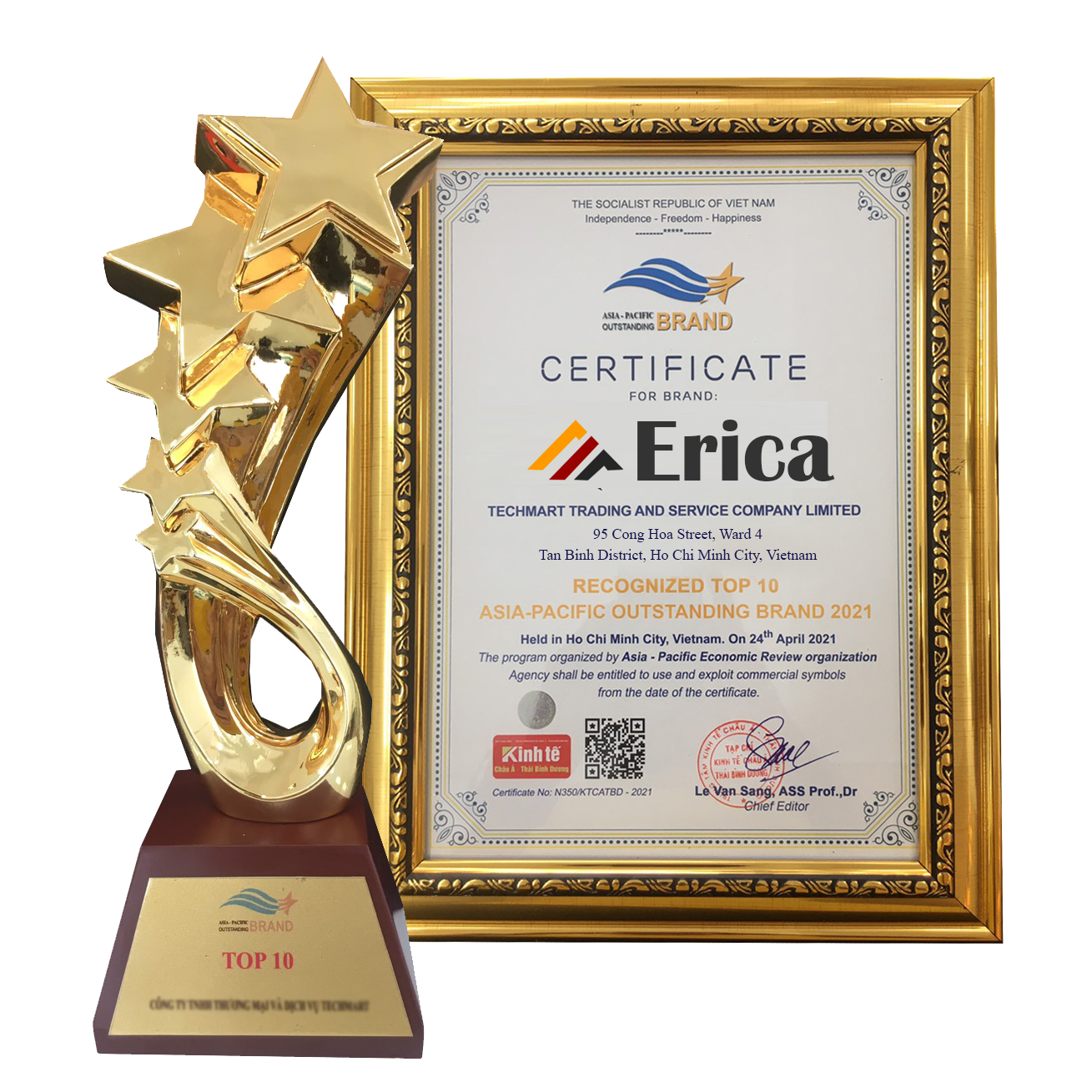 ERICA – Thương hiệu độc quyền, được vinh danh tại lễ trao giải top 10 thương hiệu nổi bật khu vực Châu Á – Thái Bình Dương.