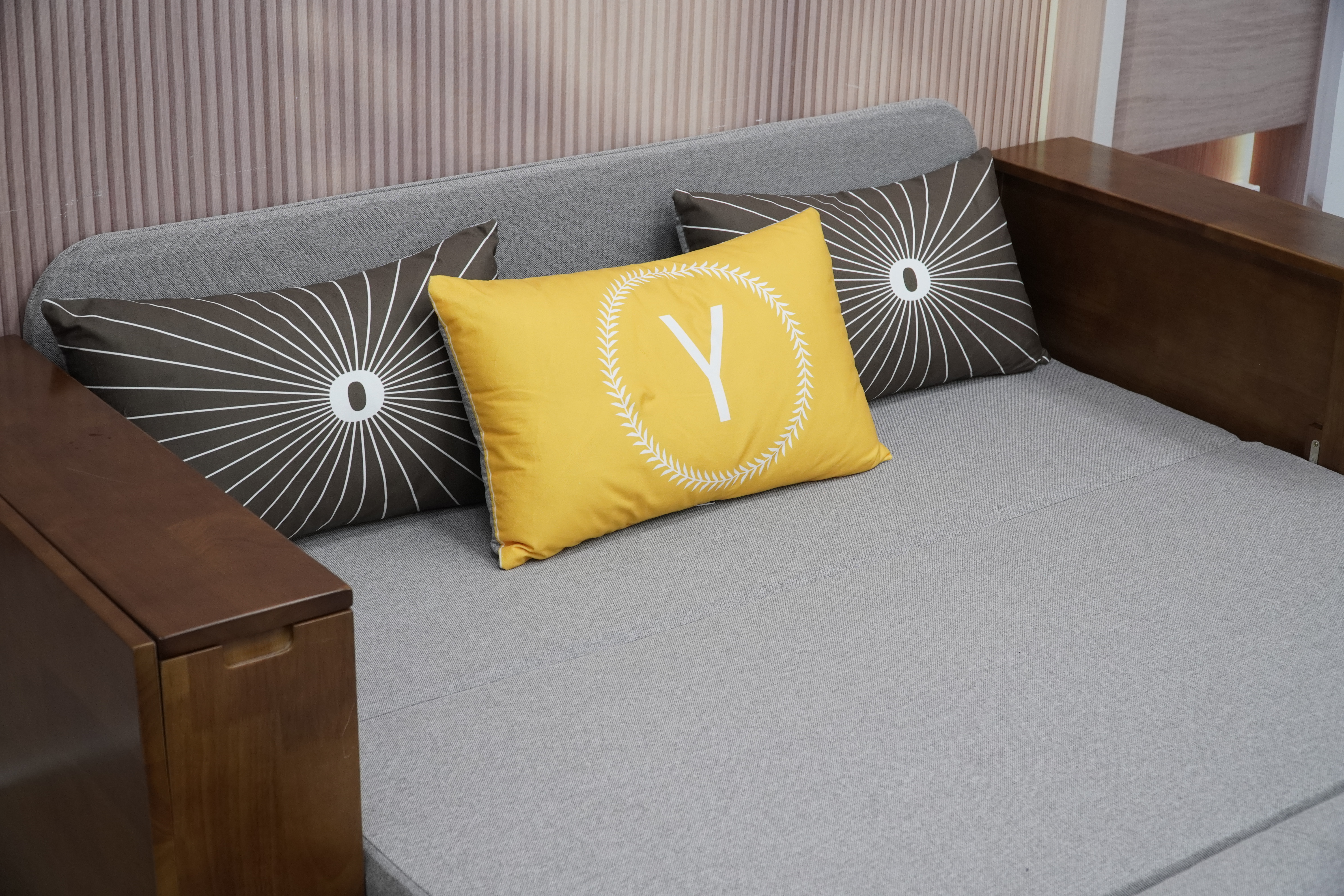 Đệm của giường gấp thành ghế gỗ ERICA – EC5 là đệm bọt biển chất lượng cao. Kết cấu đệm bền chặt cùng khả năng phục hồi tốt, không dễ bị biến dạng, thoải mái khi sử dụng và bền bỉ cùng thời gian. Độ nhún của đệm vừa đủ, nâng đỡ hoàn hảo, bảo vệ cột sống khi tựa/nằm. Bên ngoài bọc vải lanh cao cấp, không xù lông, không bay màu, không độc hại. Bề mặt vải mềm mịn, chống nhăn, thấm hút tốt, thoáng khí, tạo cảm giác thoải mái, dễ chịu cho người sử dụng.
