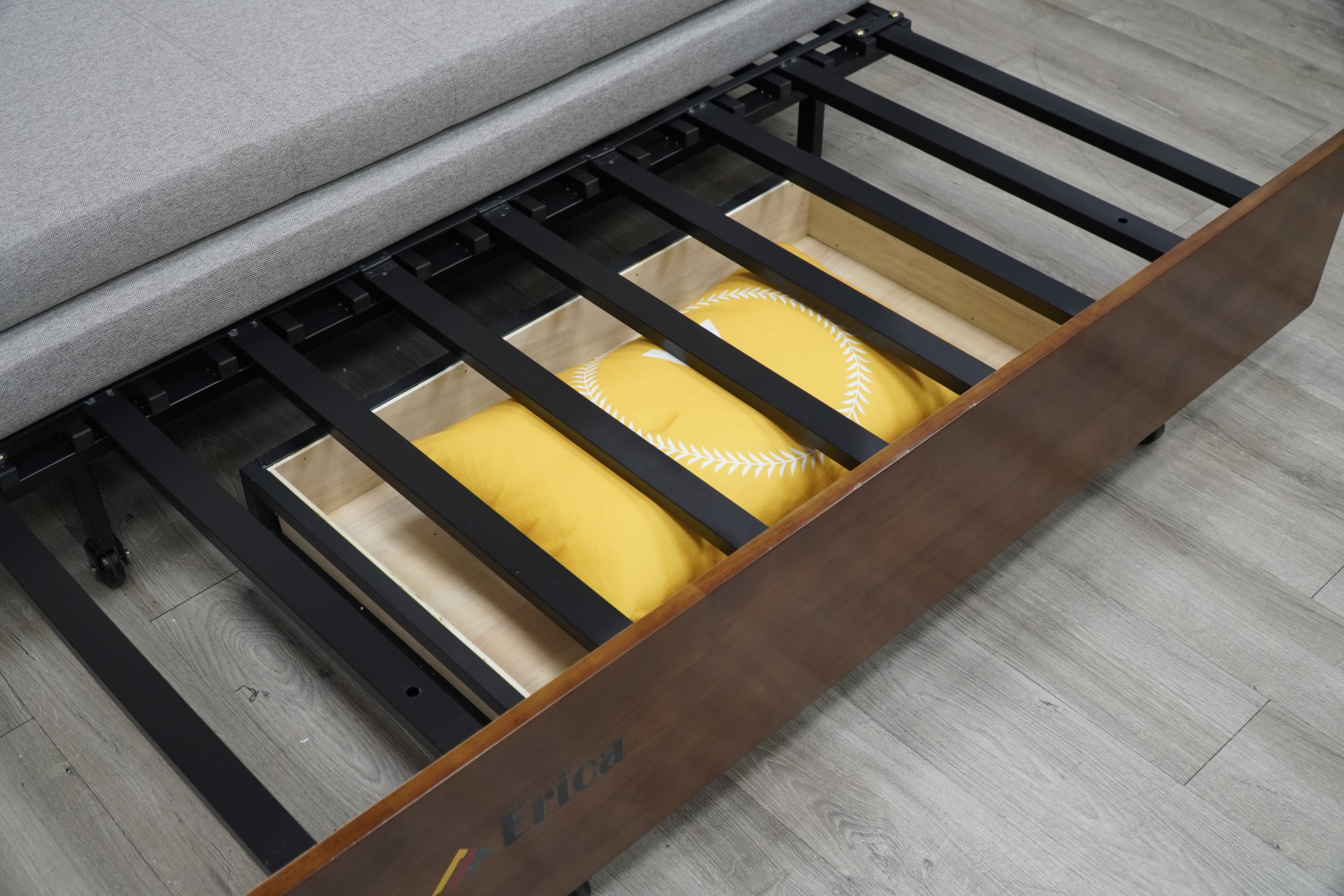 Có thể nói, các sản phẩm giường gấp thành ghế không còn xa lạ gì đối với người tiêu dùng Việt. Nếu thời gian trước là cuộc chiến về mẫu mã, giá cả, chất liệu,…, thì thời gian gần đây lại là cuộc chiến về công năng sử dụng. Giữa vô vàn các sản phẩm đa công năng đó, giường gấp thành ghế gỗ 6 tính năng trong 1 ERICA – EC5 nổi lên như một “thần thoại” của ngành nội thất khi được coi là món đồ nội thất nhiều công năng nhất vịnh Bắc Bộ. Hứa hẹn sẽ đáp ứng mọi nhu cầu sử dụng một cách trọn vẹn.
