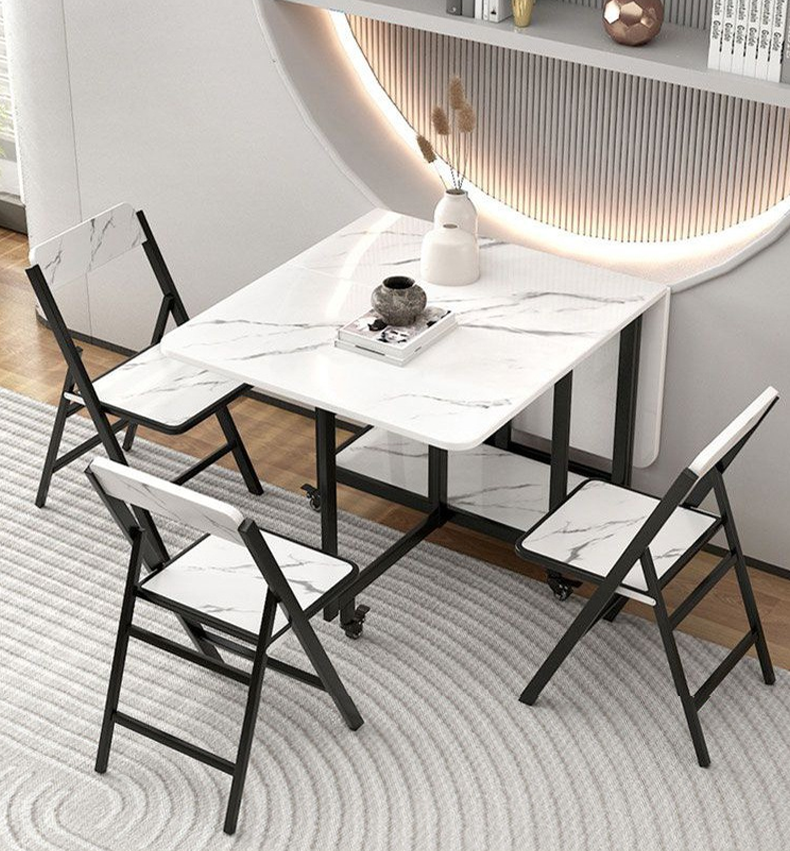 Bộ bàn ăn 6 ghế này có thiết kế cực sáng tạo khi sử dụng quy luật xếp gấp thông minh của nội thất Nhật Bản. Có thể gập mở một cách linh hoạt với 3 hình thái chính: Mở rộng hoàn toàn - Thu gọn 1 nửa - Gấp gọn hoàn toàn, đáp ứng mọi nhu cầu sử dụng. Bộ bàn được làm từ gỗ MDF đạt tiêu chuẩn E1, khung chân kim loại phủ sơn tĩnh điện chống gỉ - chống bong tróc. Các cạnh góc được bo tròn, đánh bóng kỹ lưỡng, an toàn tuyệt đối mỗi khi sử dụng.
