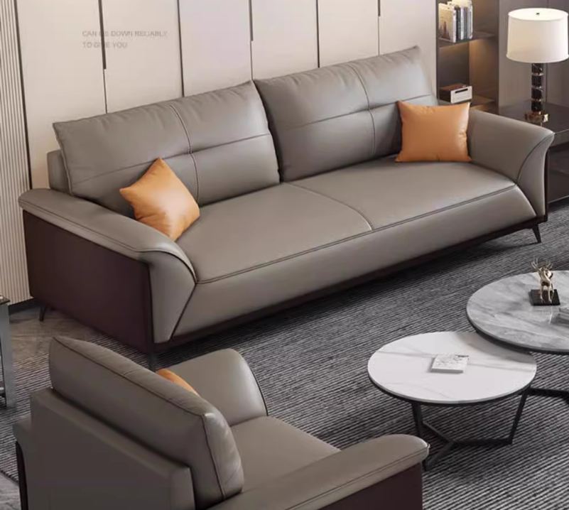 - Da thật (Leather): Được xem là “vua” của các loại chất liệu, da thật mang lại cảm giác sang trọng, bền bỉ, dễ vệ sinh và càng dùng càng bóng đẹp. Da bò Ý, da bò Mỹ, da trâu… là lựa chọn hàng đầu cho sofa phòng khách lãnh đạo.