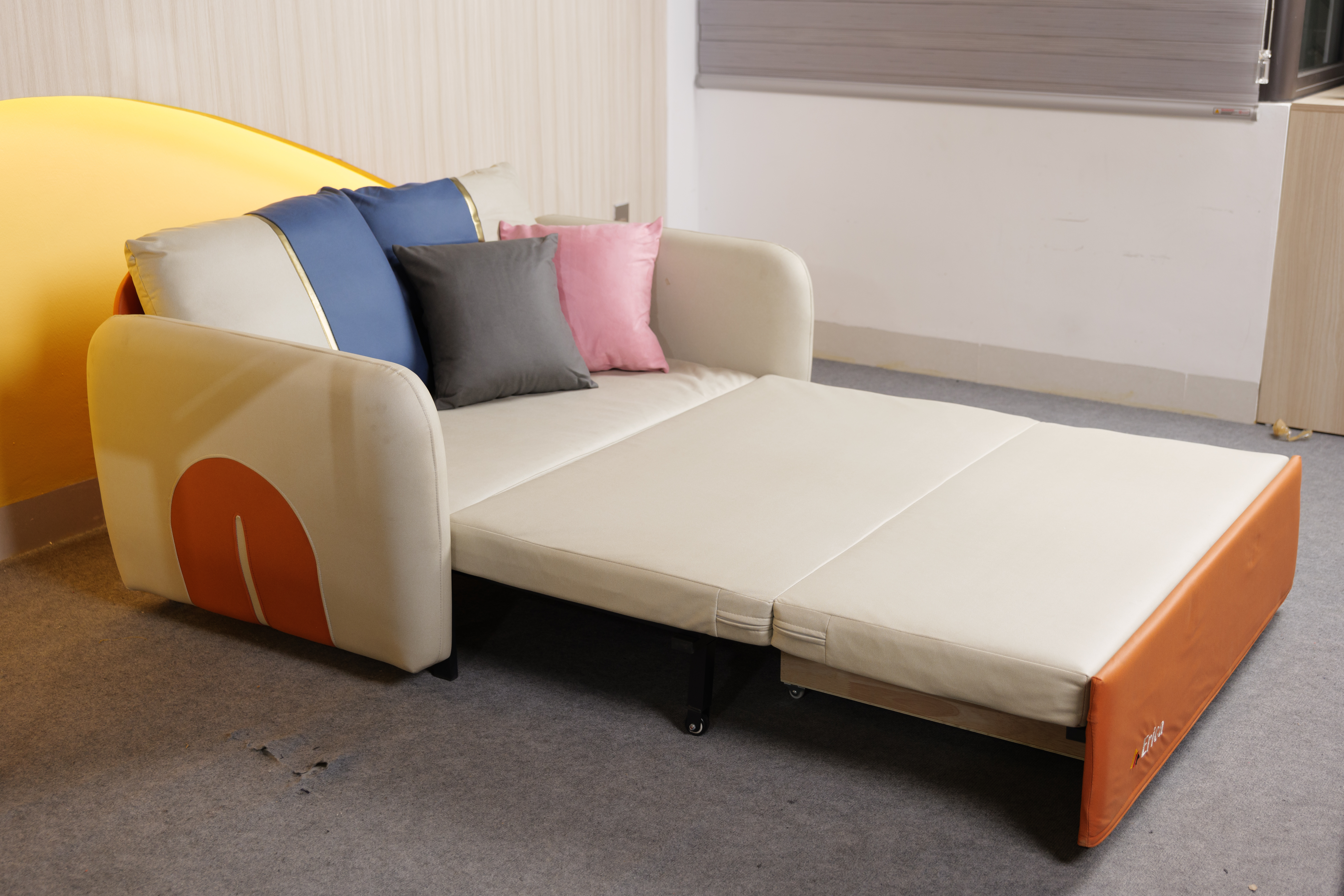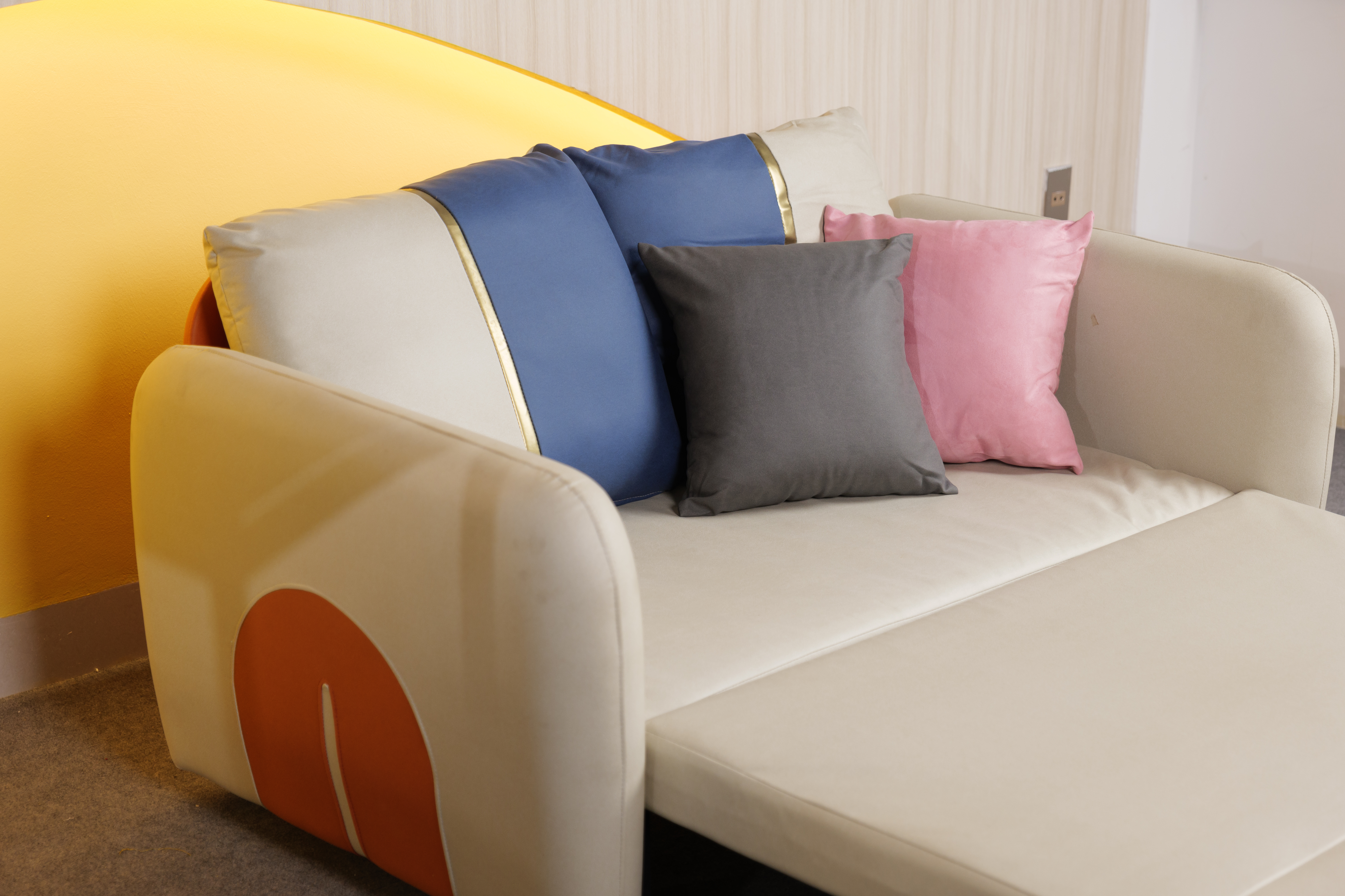 Phong cách Colour Block đầy táo bạo, phối màu hiện đại, bảng màu trẻ trung kết hợp cùng vài chi tiết màu vàng lấp lánh, khiến giường gấp gọn thành ghế ERICA – ED12 trở thành điểm nhấn nổi bật khi bày trí trong không gian.